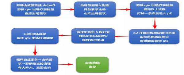 2、p2开头的地火是元素伤害,游侠需要注意躲避,防止影响萧云下的增伤效果,具体操作是在山吹盾反后出场,打5段分支(砍7刀)后换出白练闪避地火;