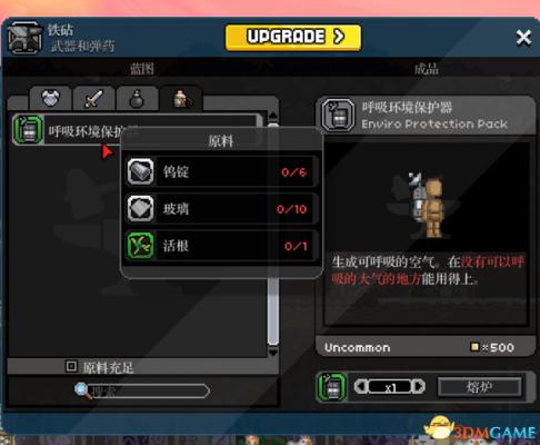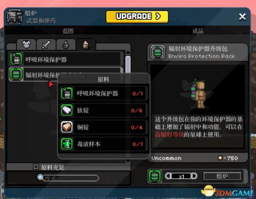 然后铁砧的第四栏,就会有EPP列表,最初级的铁砧只能造绿色品质的,可以在没有大气的环境和水里呼吸。