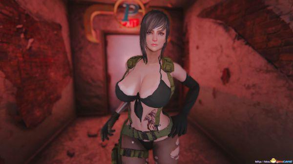 辐射4合金装备静静服装MOD 超大胸破洞丝袜服装MOD