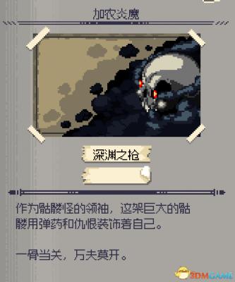 3层最好打的boss,不会召唤小怪,就自己光秃秃的滚,移动速度比较慢,中远程打,难点在于滚之前的方向无法判断。