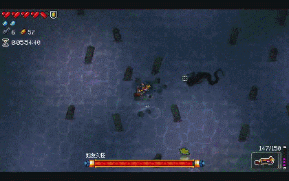 二层很恶心的一个boss,一些弹幕无法预判,而且还会回血,吞石回血的时候还顺带加移动速度,有清弹幕的枪最好用一下,考虑贪吃蛇的不规则移动最好是远程打比较好。