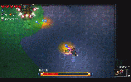 二层比较好打的boss,当然得搞点计策,比如使用散弹枪或者冲锋枪快速清突击炮,激光的时候可以换蓄力枪或者发射间隔高的枪,恶心的小怪不能及时清死就按Q继续打,盯死boss的召唤物而不是boss。