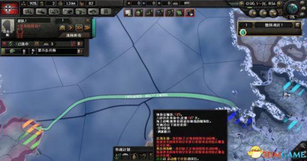 设置攻击阵线后会有大箭头出现在地图上指示推进方向,大箭头上写着执行该任务的师的数量和所属军团。
