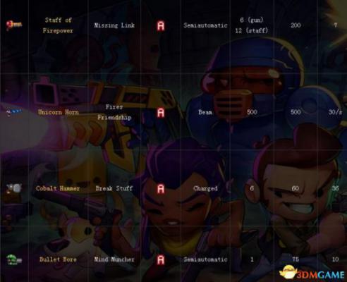该枪可以发射激光,每个弹匣的最后一道激光会召唤出一个友好的 Beadie ,用这把枪与boss 大眼怪Beholster 战斗会使你不会被boss召唤的 Beadie 所攻击。