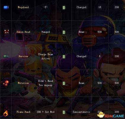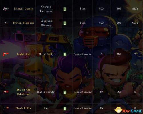 该枪短暂充能后能持续性的发射出一个巨大光束,随机给予敌人各种不良状态。