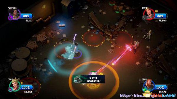 然后穿过一条走廊后来到另一条轨道上,留意东面(轨道拐弯处),使用PKE打开东面一个房间的门内进击退BOSS大师鬼(它会使用电网)后可以拿到罗恩的鬼魂仪器2/4。