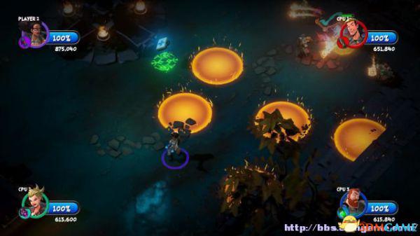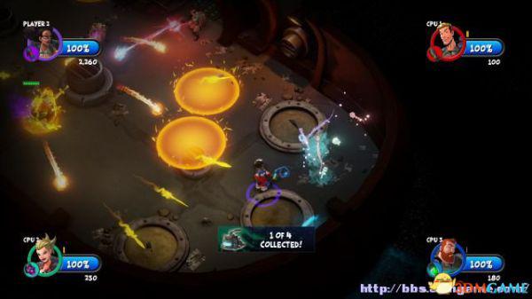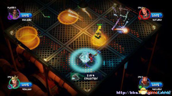 step3.第三个浮岛中对付BOSSsparky,首先它会把自己禁锢在中央,周边的电柱为其提供电力,所以不能靠近电流出现的地方,不同时间由不同电柱提供电流,所以需要躲避。