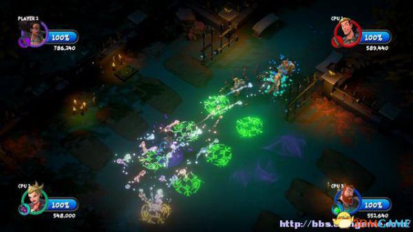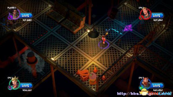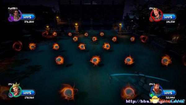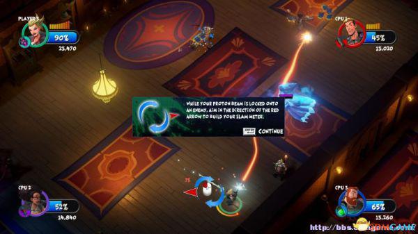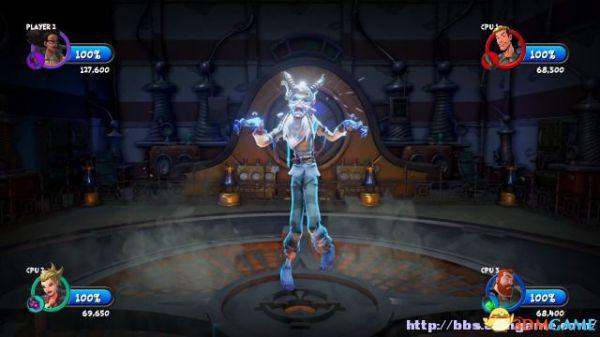 step4.第四个浮岛上要对付mayhem,它是会飞行并呕吐毒液的恶魔,在其处于地面战斗时可以对其攻击,当其飞起来的时候无法对其造成伤害,而且它会在地板上留下大量呕吐物,这些呕吐物不能踩踏,否则会中毒。