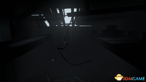 猪圈中间的绳子爬上来,荡到左边的房梁上,再从房梁上跳过来拔掉发光装置。