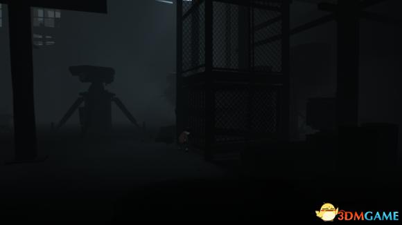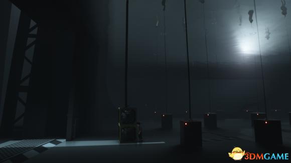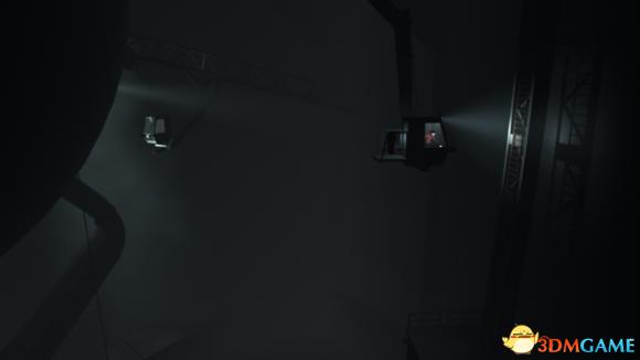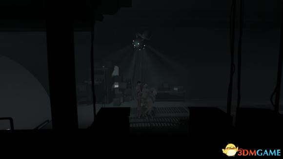 回来拉开电源,不要让远处两台机器的探照灯照到,利用柱子挡住探照灯,往右边走进入电梯内。