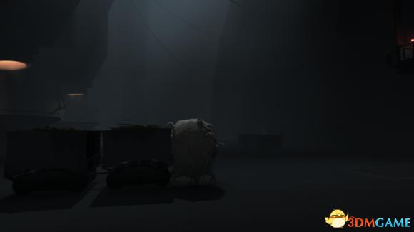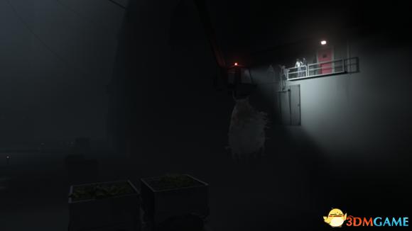 继续往前走,拉开卷帘门出来,走到尽头将小车往里推放下左边的铁链,然后从铁链爬上去。