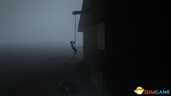 从地下室回到玉米地后往前走来到房子前,利用房子前的绳子荡到门上的窗口,进入房子内。