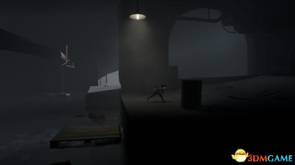 来到上面污水池,往前走来,利用平台抵挡探照灯,然后等探照灯往右边扫过后去转动中间机关。