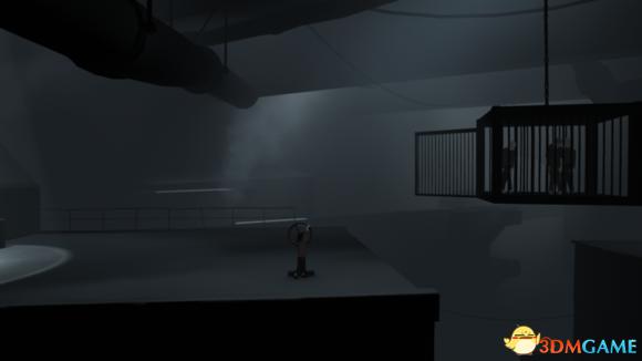 利用上面的管道抵挡探照灯的光,然后过来右边转动机关放下笼子,探照灯过来时再躲回管道下,2-3轮后便可把笼子放下,然后跳到笼子里。