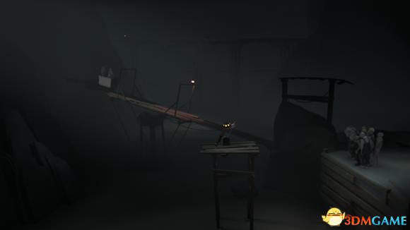 拖着木条继续往前走,将木条放在地上的机关然后趁升降机没完全升起前爬上去,继续往前从高空落下。