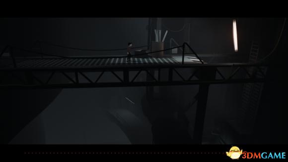 房间内斜坡处先等一下,把狗引过来后再翻上去,然后接着往前跑跳出去接上控制装置。