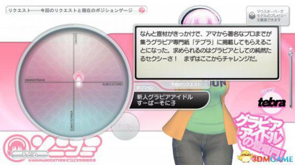 2、是一个进度条,也可以说是蓄力条,每当蓄满一次就可以右键选择对话,更换体位(我承认我邪恶了= =)或者喝水补充体力,对话会改变索尼子的心情和状态,当五格粉色全满后,再次对话就可以进入下一阶段,索尼子的动作和pose会有所改变,难度也会有所增加,但这是得高评价的关键,想要得SS的话不光是一下不断就OK的哦~在拍摄时记得看一下索尼子的体力。