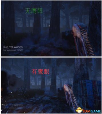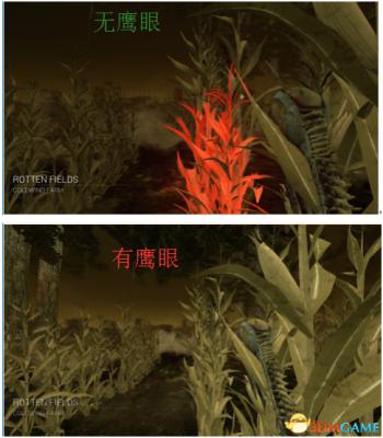 即使人类在远方你也能看得很清楚,找人神技,其实图片里的无鹰眼是增加了20%清晰度的,实际上无鹰眼的清晰度还要更浑浊一些。还有就是有鹰眼的屠夫,踢板子时,左上角是可以看见的,很方便后续找人。