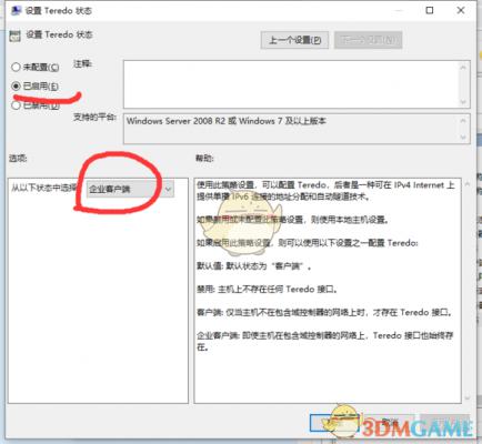 2、然后“Teredo状态”配置为“企业客户端”,如图: