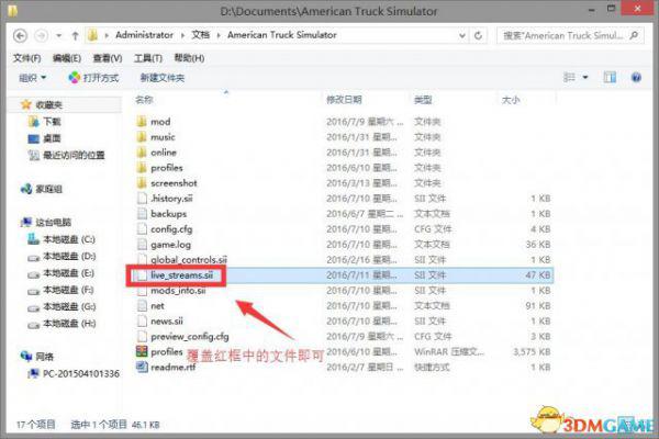 如图所示,将文件覆盖至X:DocumentsAmerican Truck Simulator 目录下即可。