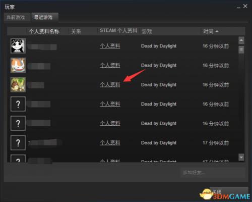 有的玩家因为中文名游戏会显示方块,这怎么知道他的ID呢!当然有办法,打开steam左上角视图选项里面有个玩家,点开之后就可以看到最近的游戏玩家!点击个人资料就可以看见他的ID以及游戏时间来此判断是否改档!