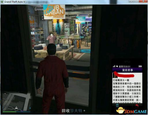 这时候服饰店是进不去的。靠紧门口并退出任务(打开手机,在差事清单里按空格退出: