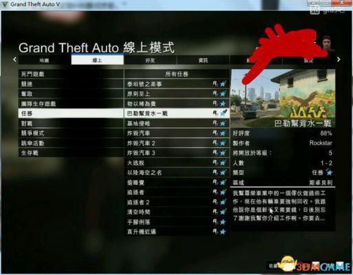 这时候 按esc进入暂停菜单。在线上→差事→进行差事→rockstar制作→任务里随便开一个差事,确认一下这时候还是穿着老大服装的: