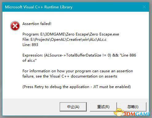 极限脱出3游戏问题 assertion failed错误怎么解决