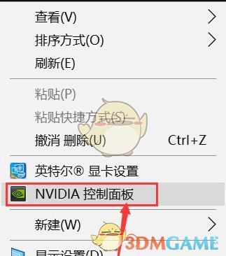 先回到桌面,在桌面空白处点击鼠标右键,选择NVIDIA控制面板进入,如下图所示。
