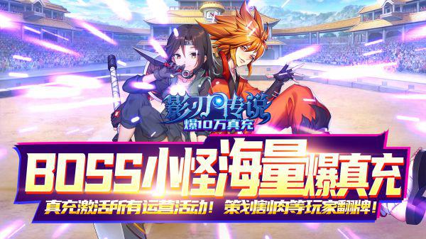 《影刃传说》是一款二次元MMO手游!纯正的二次元配音!火爆全球的吃鸡玩法!1、上线即送GM1,钻石888888,绑钻888888,金币888W,当天满活跃,直升GM7!2、野外击杀小怪、野外击杀小怪无限爆充值卡(无上限),轻轻松松每天爆万元充值卡!打造全民福利手游,野外小怪掉落的充值卡激活累充运营活动(首充等除外)!3、地宫首领、叛忍首领击杀百分百爆真充卡碎片!跨服首领,对首领最后一击的玩家百分百获得98元真充卡,参与的玩家百分百获得6元真充卡!4、充值比例1:1000!天天活跃天天白嫖单笔1200元充值有礼活动!还有1000W金币!无限资源福利等你拿!5、首充还送逆天法宝·神圣火葫,拉风坐骑·九尾妖狐!无限资源价格大幅降低!还有全新投资,新增各种神级道具等着你!