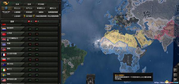 今天为大家带来《钢铁雄心4》半现代MOD,MOD世界分为多个国家联合阵营,阿盟,南美联盟,东盟,上合等,新的主要国家都增加了人口和工业,中国适当增加了几项资源,美帝工业上调了下(世界警察)美帝对一些区域国家进行了独立保证,打一些国家就得问问美帝或国家联盟。中国收复台湾,美日会参战,毛子会对乌克兰宣战,以色列在阿拉伯世界也很辛苦。这个MOD是在36年修改的,德意志联邦还是会发生二战的东扩的事件,二战的核心,还没修改一些二战事件,只弄了简单的战争事件,还有6个新国家的国旗没符合。