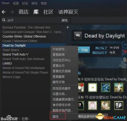 steam库里面鼠标右键点击黎明杀机游戏,然后在弹出的菜单点击最下面的属性,属性里面点本地文件验证游戏完整性,验证完成点击关闭,进入游戏就是官方英文版。