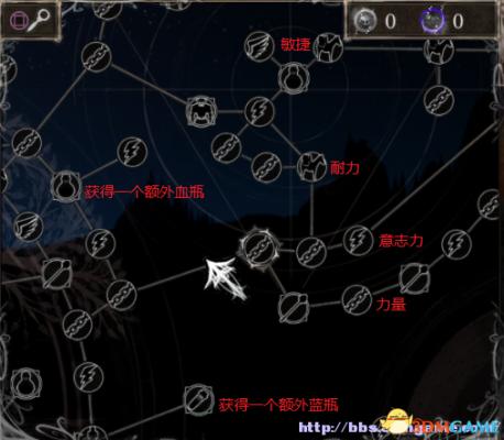 天赋按照图标寻找加点路线就好,觉得血瓶不够的,优先点出增加血瓶的天赋。