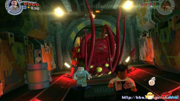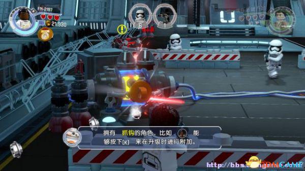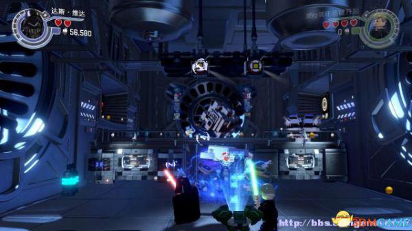 step5.接着前往左侧近方的控制室,在这里用芬恩的光剑在左侧的机箱内取出一个乐高罐。