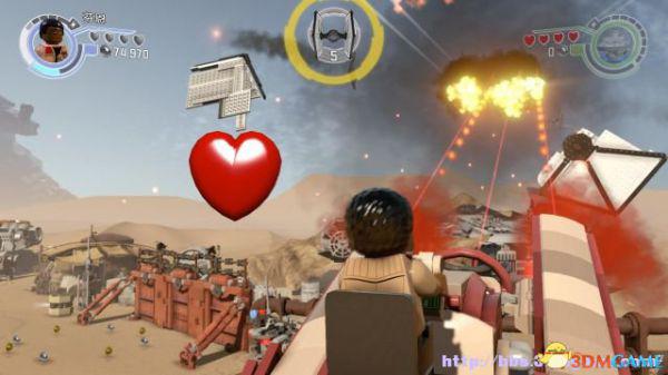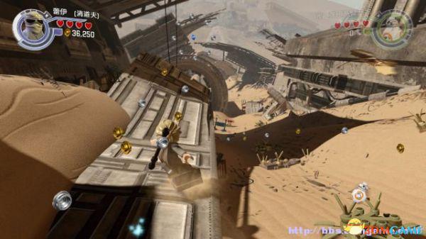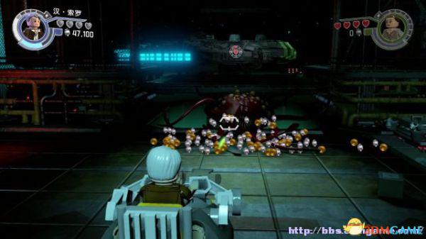 先不要让汉·索罗下步行机器人,而是利用它射击这个场景内的三个金色岩石,可以完成一个挑战。