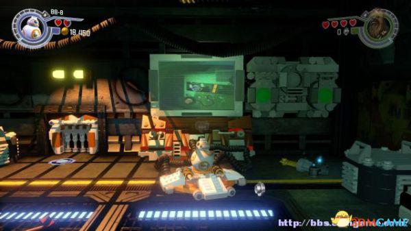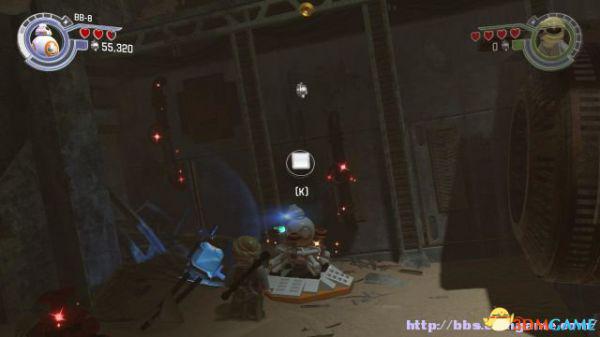step7.BB8可以操作这里的一个电力开关(需要进行图形吻合解密),那么就能成功打开军械库的门(右侧有些道具需要在后期获得卢克·天行者之后再回来获取)。