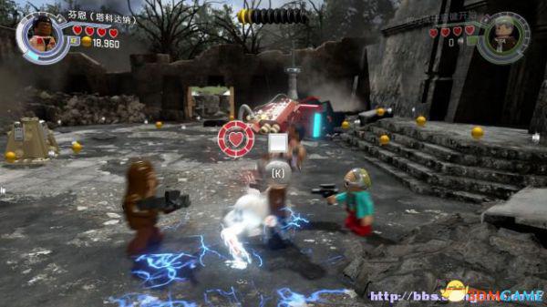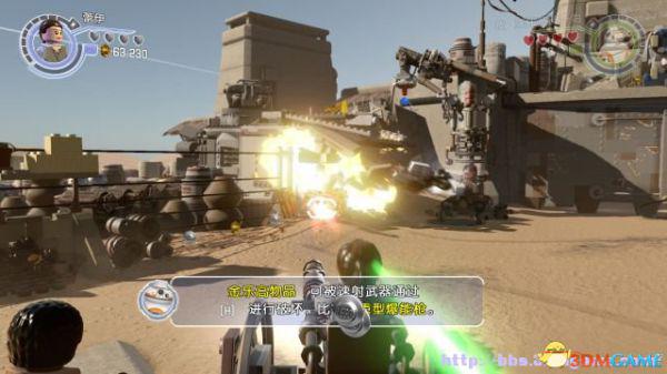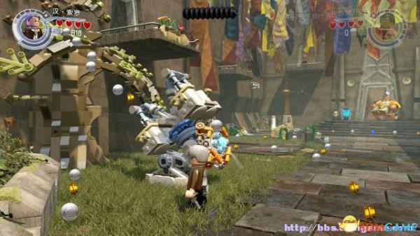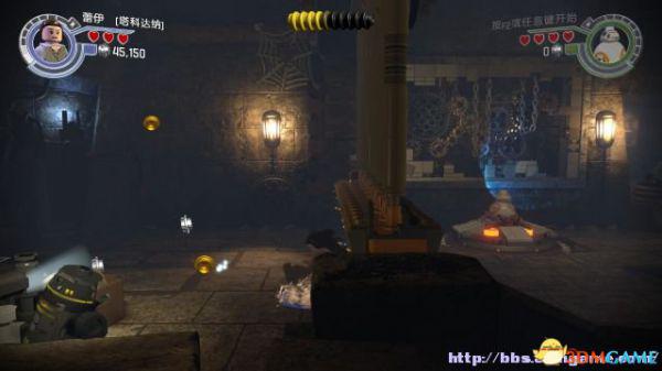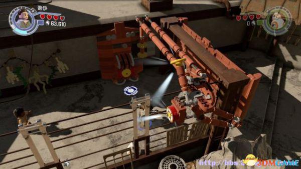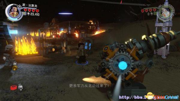 step11.首先的枪战,先不要理会冲锋兵,而是去到他们的右侧,用波·达默龙绳索将一个机械塔扯下来,然后将获得的乐高砖块搭建成一个激光炮。