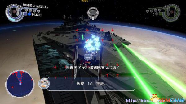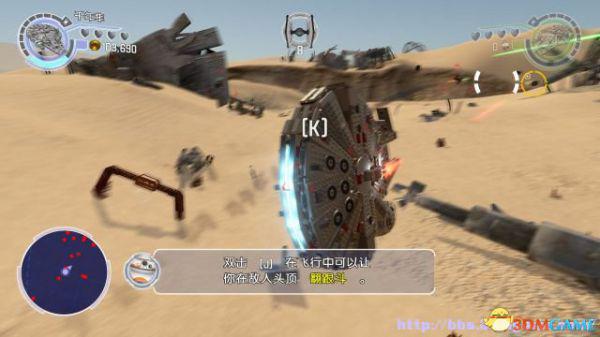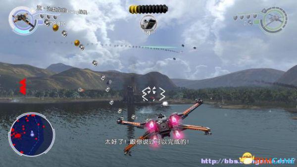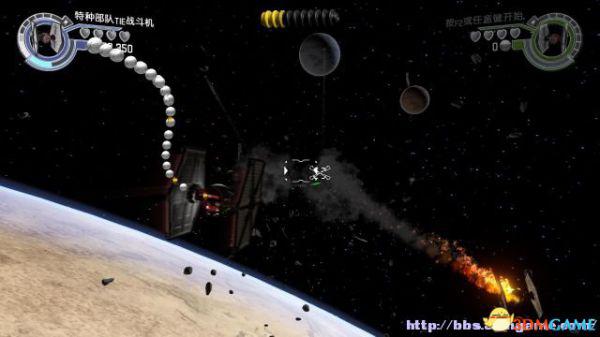 然后敌人的TIE战机会对我方进行轰炸,注意当地面出现红色圆圈标记时,就需要远离它。