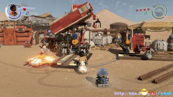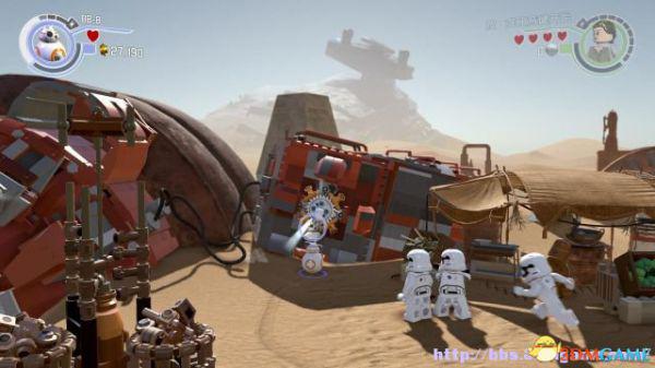 step9.然后就去激活第二个军械库,走到这个村庄的右端摧毁地上的杂物,并将获得的乐高砖块堆砌成一个开关,让BB8为其灌输电流,那么就会出现一条通往军械库内的通道。