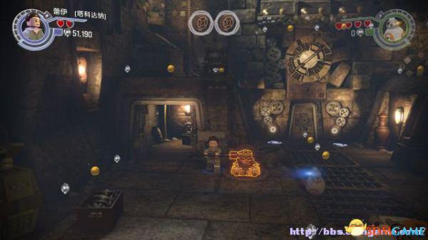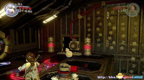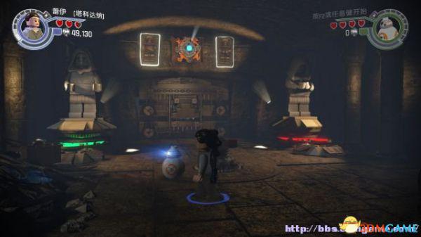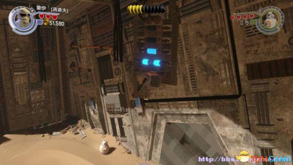 务求令到两个雕像都是面朝前方,然后壁画处就会出现一个电力装置,让BB8灌输电力就可以开启这堵机关门。