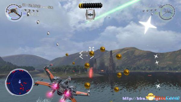 step11.驾驶战机进行空战,第一次战斗需要毁掉15架TIE战机,记得要摧毁水面钮钉环下的装置,摧毁4个可以完成一个挑战。