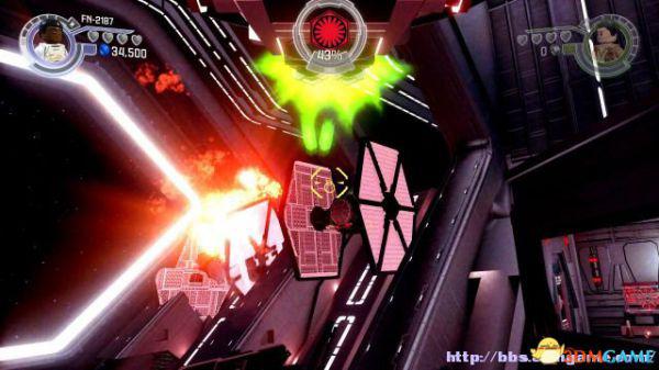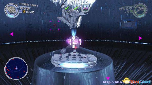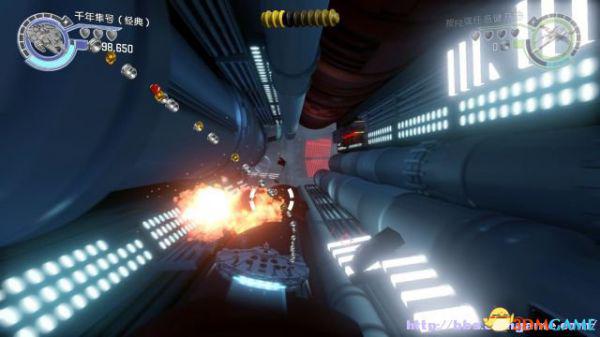 驾驶着千年凖号在死星表面飞行,这里有两个挑战,一是要摧毁红色架子上的敌人(5次),另外就是要成功穿过圆环(3次)。