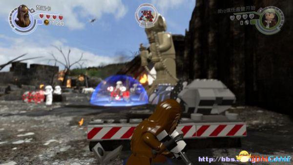 step1.走上以及,发现一架坠毁的ITIE战机挡住去路,切换为楚巴卡用炸弹摧毁它。