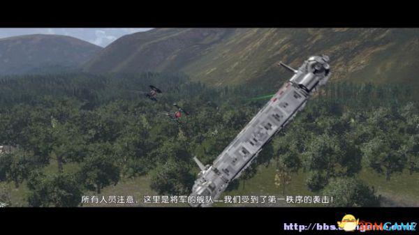 剧情:另一边厢,义军的舰队因为敌人数量众多以及死星放出射线而无法靠近。