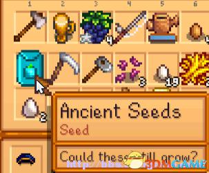 远古种子分为两种,一种是古物远古种子,一种是种子远古种子。下矿、钓鱼和挖地会得到古物远古种子,钓鱼、神秘商人和种子机回收可能会直接出种子远古种子。古物远古种子捐给博物馆后,冈瑟会给你一个种子远古种子和一个配方(古物远古种子加工成种子远古种子)。有了种子远古种子后,种上,等成熟后放种子机里加工种子。如果你直接得到了种子远古种子,不会解锁古物远古种子的配方。