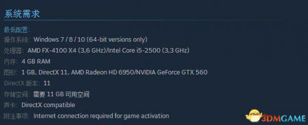 图形: 1 GB, DirectX 11, AMD Radeon HD 6950/NVIDIA GeForce GTX 560