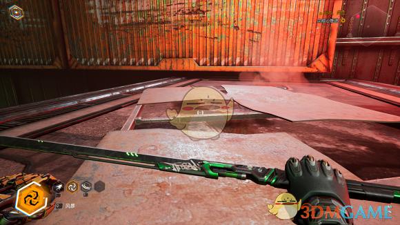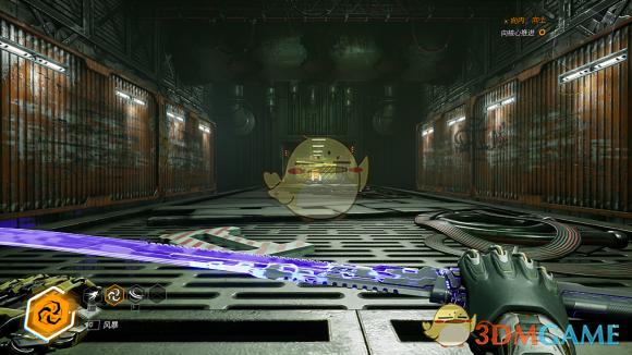 流程:「在关卡中期偏前期」的时候,来到图一的位置,躲掉四个自爆兵之后在图二的位置往黄箭头方向上滑索,就能在图三的位置捡到武器。(忽略字幕xD)