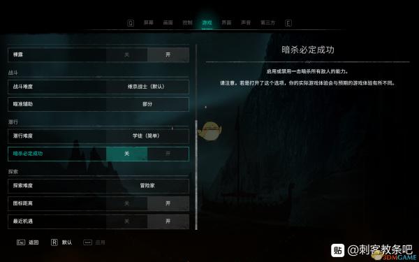 在《刺客信条:英灵殿》中,暗杀系统从宣传cg中就有所体现,有很多小伙伴都很关心的一个问题就是暗杀能不能一击死。玩家“B-Robin”带来了《刺客信条:英灵殿》暗杀必定成功选项介绍,感兴趣的小伙伴就来看看吧。