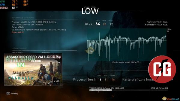 《刺客信条:英灵殿》1066各画质帧数实测: