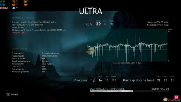 在极致画质下,平均帧数只有39帧,1066需要玩家在帧数与画面这两方面做出取舍。